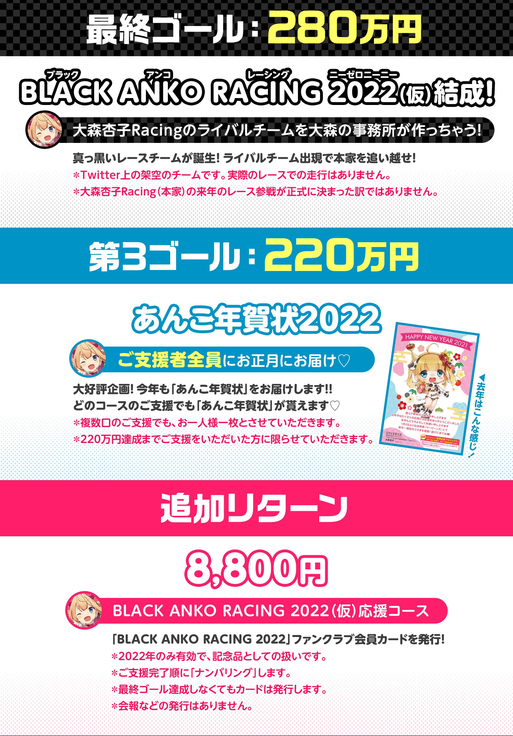8,800円『BLACK ANKO RACING 2022(仮)応援コース』追加!