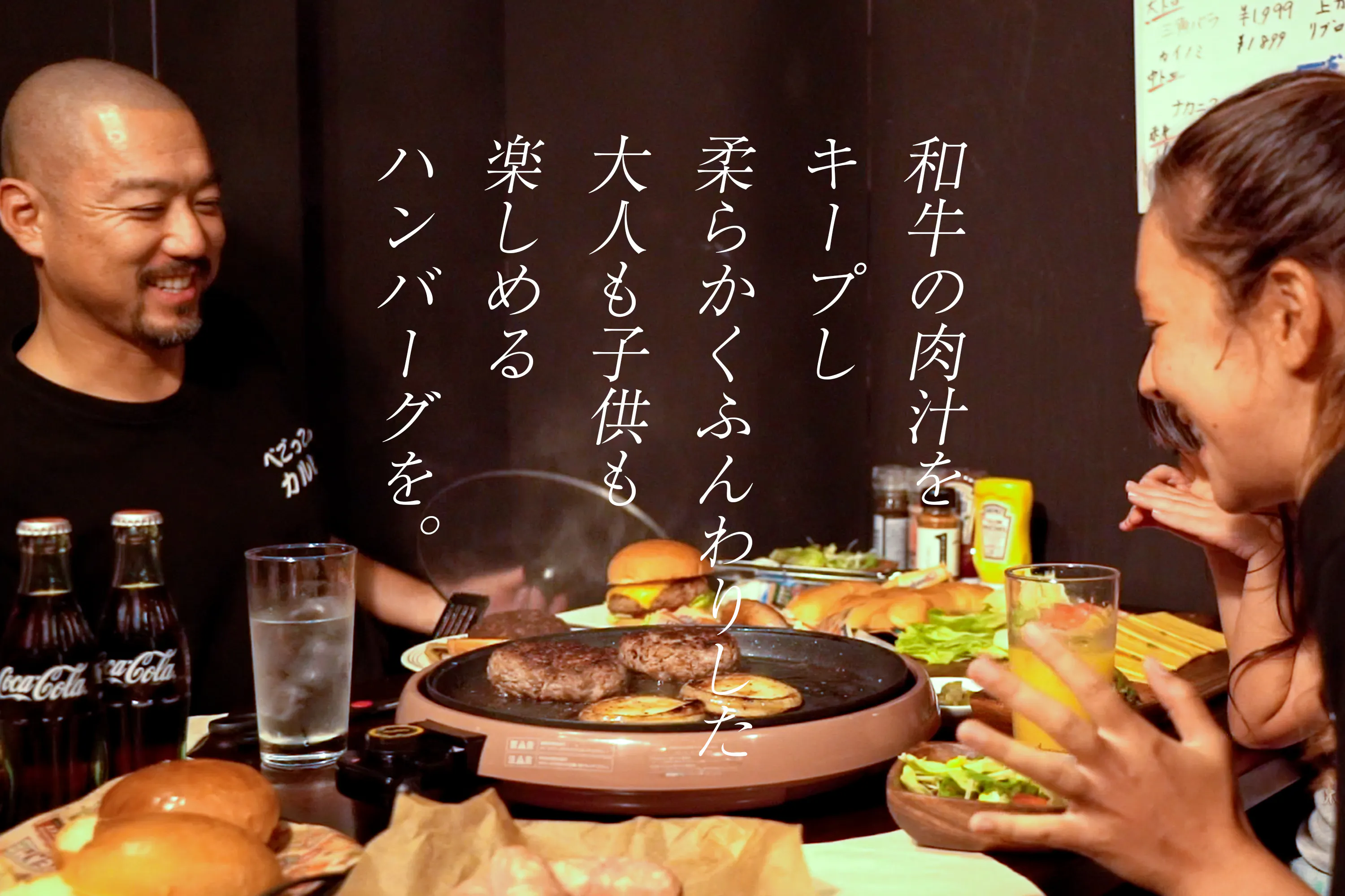 今回ハンバーグと同じくらいお伝えしたかったことは、今回のリターン品で楽しんで頂きたいと言うことです。これまで一貫して「楽しむ、笑顔になる」を提唱し続けて参りましたが、長引くコロナ禍で私自身も楽しむこと、笑顔になる事の数がかなり減ったように思います。今回、この企画を立ち上げ、自宅で家族と実際に、食べ方提案させて頂いたように、ホットプレートを囲みハンバーガーやホットドッグ、スパイス焼きめしを作りワイワイと食べてみましたが、そこには家族全員の笑顔がありました。