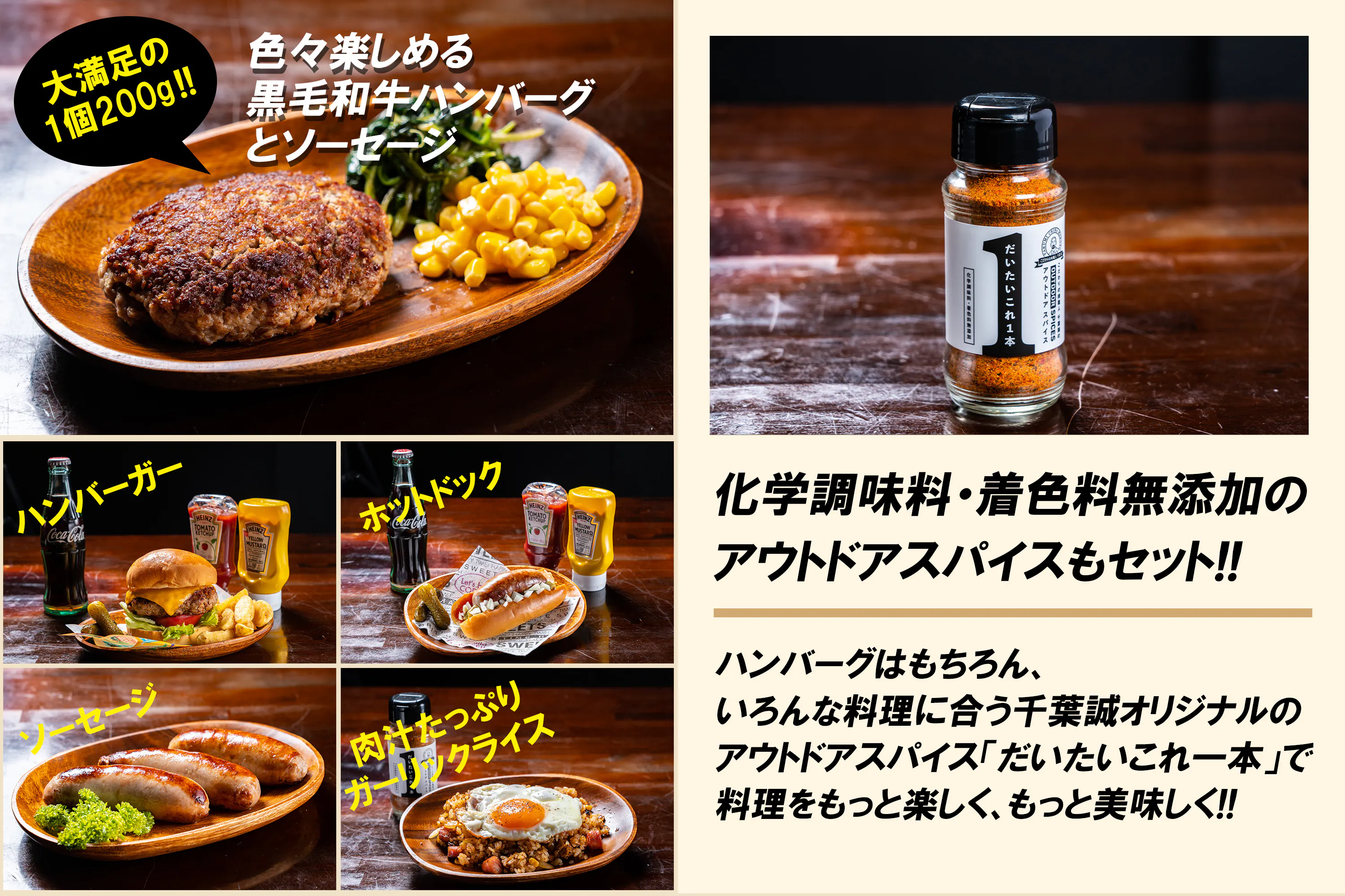 いつものように鉄板やフライパンで焼いて同梱の自家製オリジナルアウトドアスパイスやお好みの調味料で、通常のハンバーグやソーセージとして食べて頂いて美味しいのはもちろんですが・・・