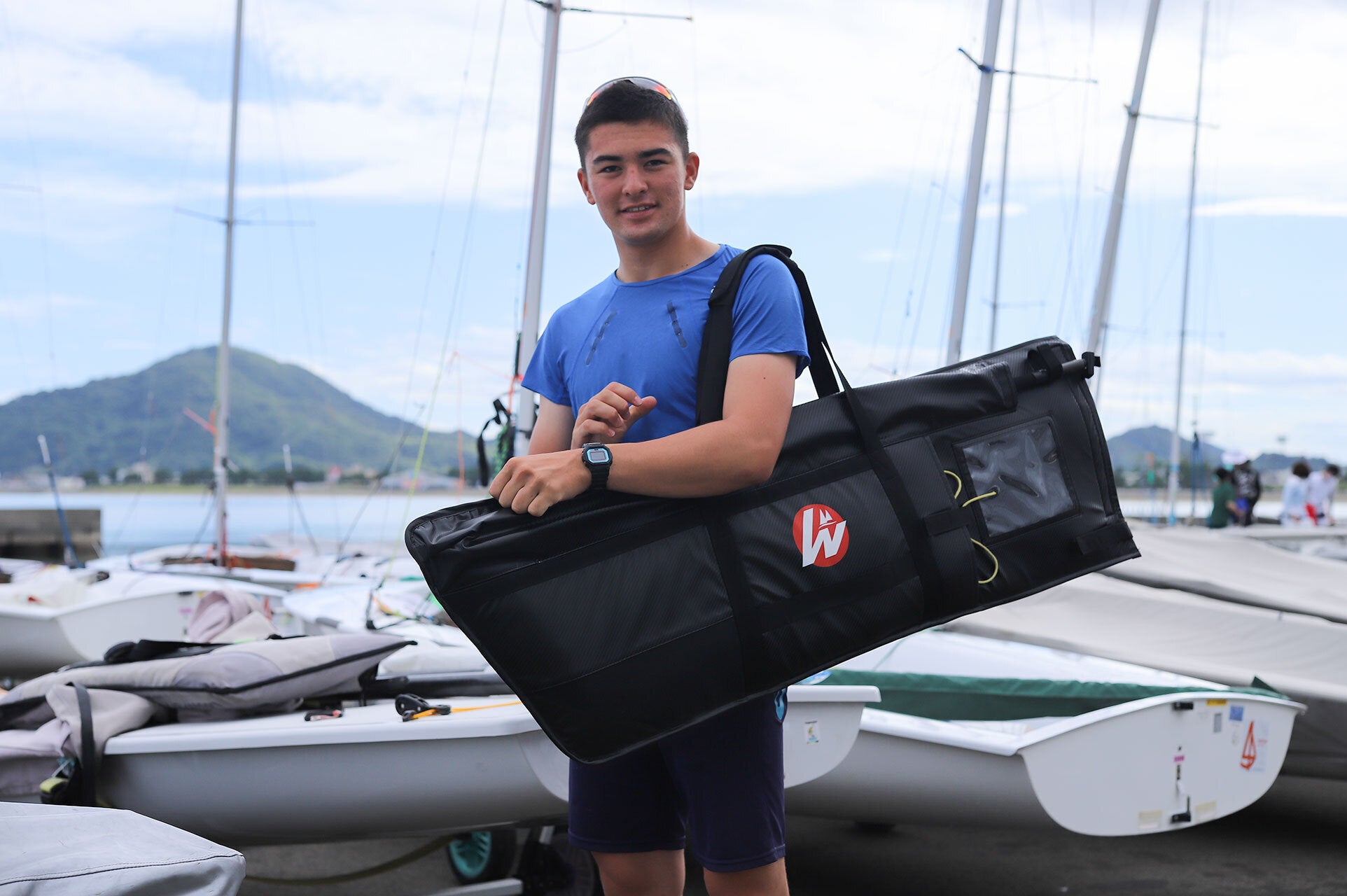 現在日本国内の主要大会に出場中のレーザー級・上園田心太浪選手に実際にバッグを手に取ってもらい選手の立場からの感想をいただきました。