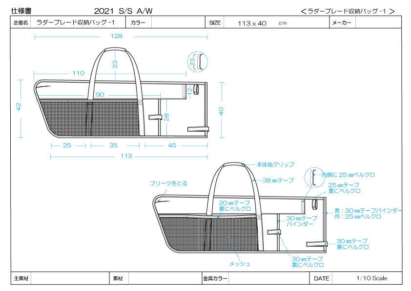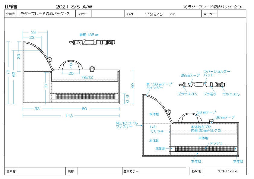 あともう少しバッグの強度が上がれば運搬時に中のアイテムを大切に守れるのに、あともう少し通気性がよければ道具ももっと良い状態を保てるのに、あともう少し長くバッグが使えたらいいのに、こういった要望を叶えてくれる製品は鞄メーカーさんでは作ることは難しいことなのかと考えていた時、縁あって国内の老舗鞄メーカー(ワコーバッグ株式会社)と繋がることができラダーブレードケースの共同開発がスタートしました。