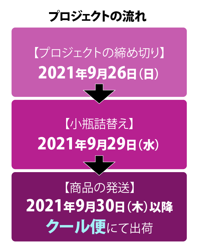 ▸ ワインは発送日直前に詰め替え、出荷までは14℃に保たれた自社セラーに保管し、クール便にてお届けします。詳しくは、「小瓶詰め替えとお届けスケジュール」 をご確認ください。