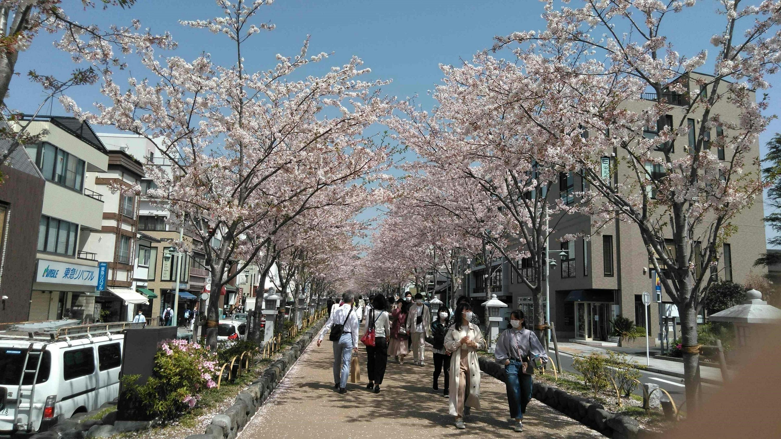 春の鎌倉の桜並木です。シーズンになると多くの観光客で賑わいます。