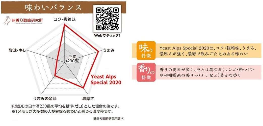 また、丹精込めて仕込んだ日本酒の複雑な味を「味センサ」を活用して、味の見える化を行なう研究も進めてきました。私と味センサの出会いは、平成5年に長野県松本市で開かれた信州博覧会でした。まだ実機は存在しない中で、開発者の九州大学の都甲先生や池崎さん(現(株)インテリジェントセンサテクノロジー社長)に無理を言ってきき酒用のロボットを作ってもらい無事出展できました。それ以来ずっと酵母の育種と並行して味センサの利用について研究してきました。このたびアルプス酵母スペシャルブレンドを世に出すにあたり、味センサを商業的に利用する企業である(株)味香り戦略研究所にお願いし味の見える化をさせていただきました。