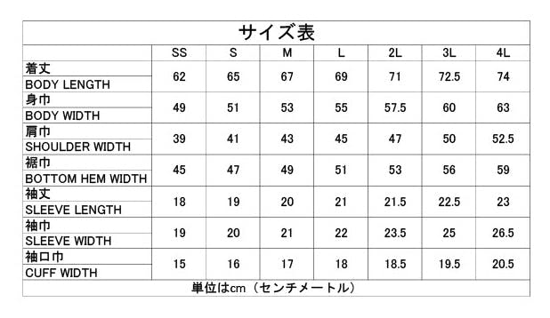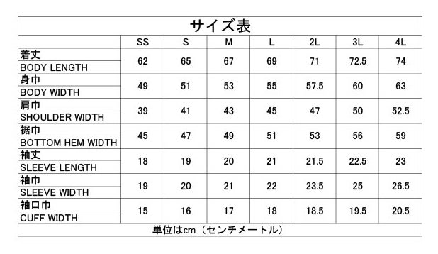 サイズはSS,S,M,L,2L,3L,4Lの7段階と幅広くご用意しています。 筋肉質な人をカッコよく魅せるためのTシャツがそれ以外の人も美しく見せるというこの新発見を生かすため筋肉質な体型の人から華奢な人まで、背の高い人から小さな人まで、男性も女性も、とにかく多様な人たちに着ていただけるように幅広いサイズ展開にしています。