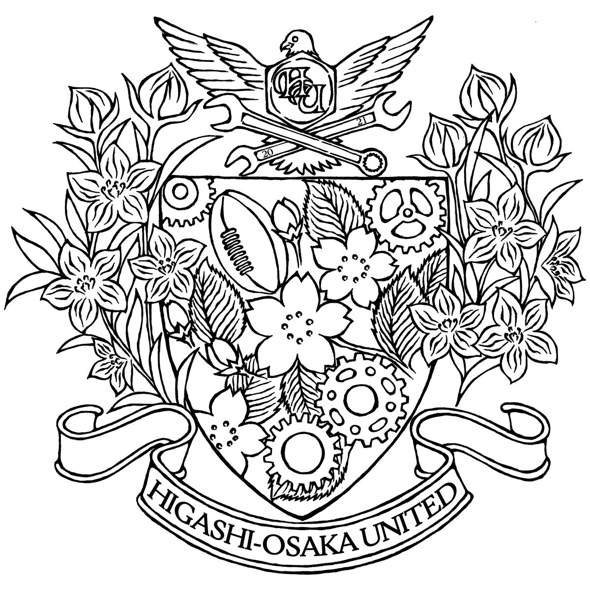 東大阪市の象徴として盾の中の歯車はモノづくりの町を、ラグビーボールはラグビーの聖地を、桜の花は人々が集まる場所をそれぞれ表しています。周りを囲むキキョウの花は東大阪市が指定する市民の花であり、開いた花(大人たち)がこれから開くつぼみ(子供たち)を下から支えている構図になっています。盾の上にあるスパナにはチームの発足年である2021年が記され、その奥に立つハトは東大阪市の市章から着想を得たもので、チームが空に羽ばたく姿をイメージしています。