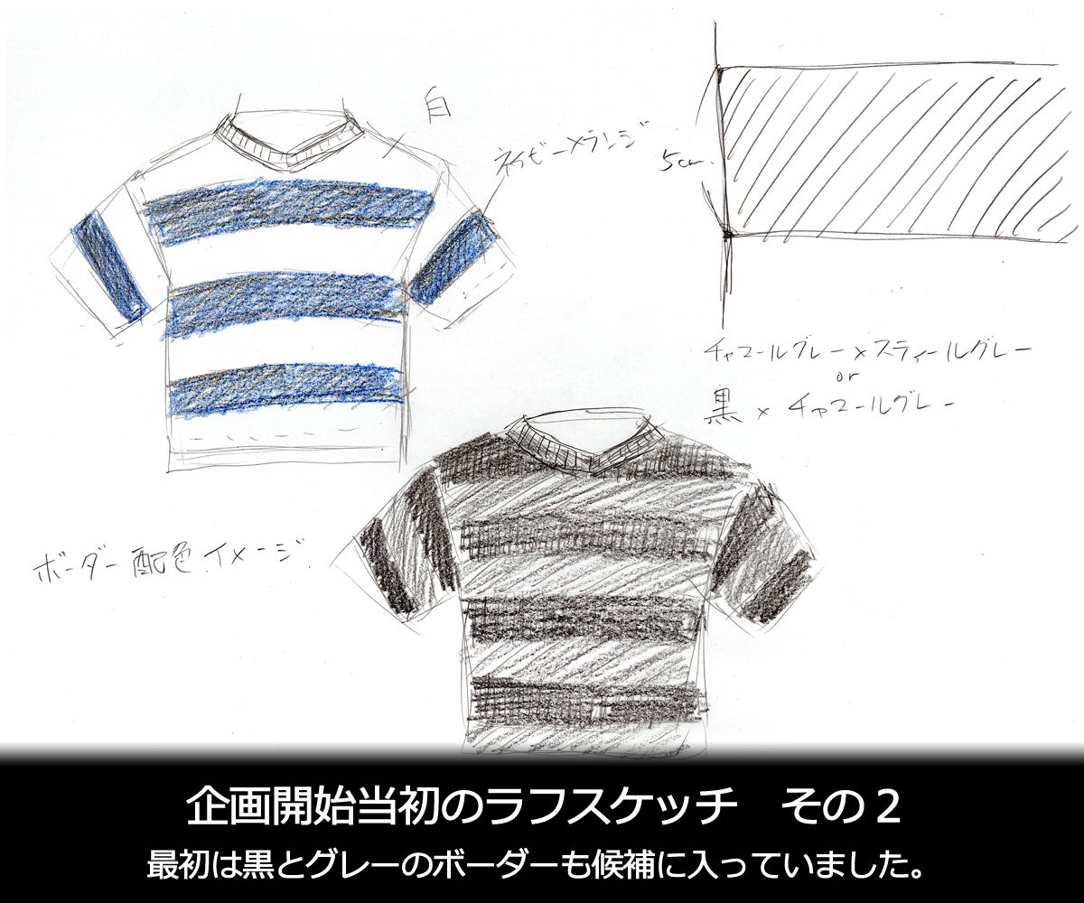 それを参考にして今回は黒の単一色とアッシュグレー&ネイビーのボーダーという2色で展開することにしました。