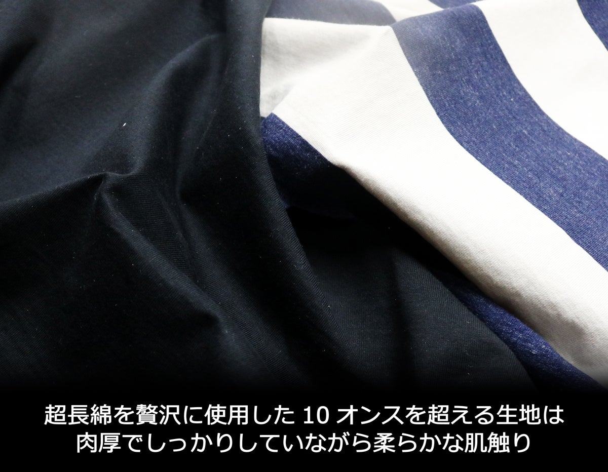 前回の13.5オンスには及びませんが、今回は10オンスの厚さを持ちながら伸縮性があって肌触りも柔らかなコットン生地を作り上げました。原材料に超長綿といわれる上質な素材を贅沢に使い、しっかり目を詰めて編んだ生地はゼロトルクⓇ撚糸で安定させているので何度洗濯してもビクともしません!