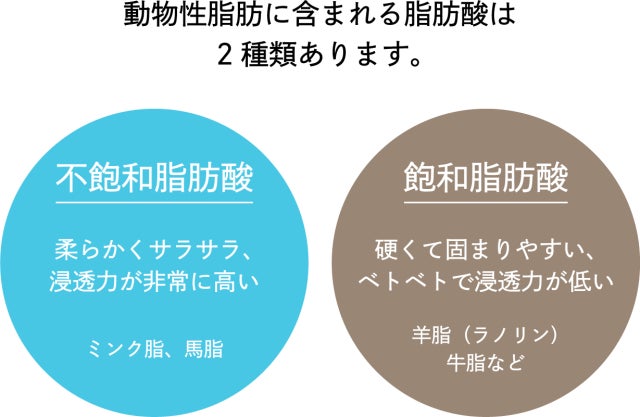 動物性脂肪に含まれる不飽和脂肪酸は、オイルの浸透力の指標となる成分です。