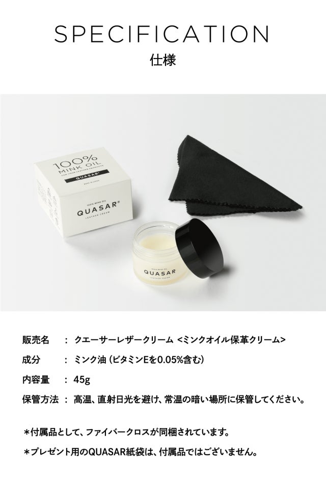 100%ミンクオイルのレザーケアクリーム、クエーサー(QUASAR)を発売