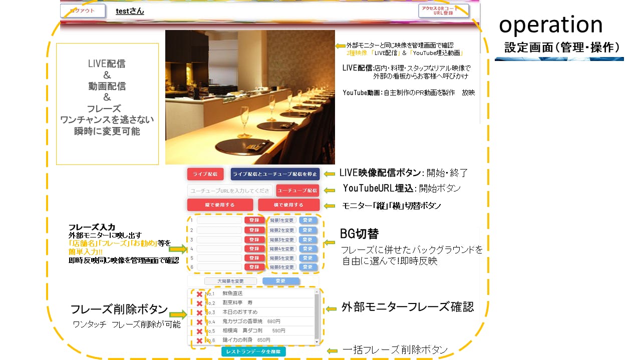 お店やクリエーターがカンタンにサイネージにライブ配信できるシステムです