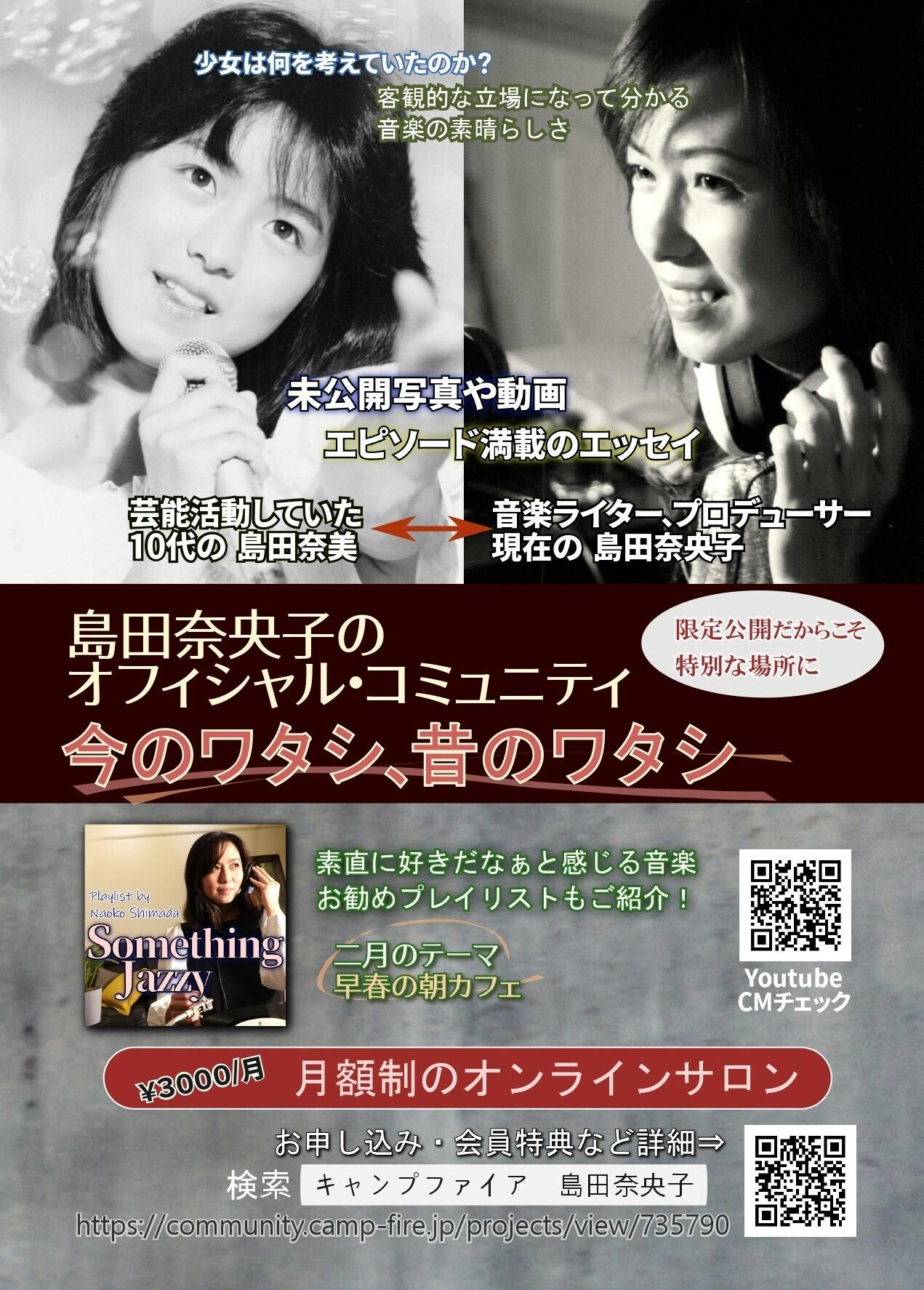 島田奈央子のオフィシャルコミュニティ「今のワタシ 昔のワタシ」のフライヤーが完成しました!