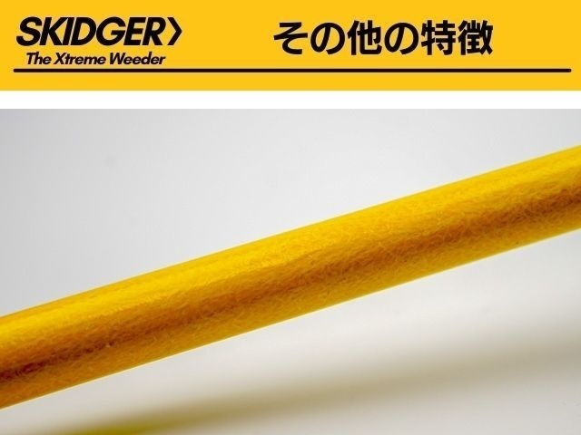 スキッジャーの特徴は鋭利にデザインされた独自のV字ブレードと後方にも研がれた刃を備えた両刃仕様です。鋭利にデザインされたブレードで前方を除草し、後方の刃はブレードを引き戻す際、内側でも除草できるよう効率化を追求しています。前後の動きで無駄なく除草しユーザーの労力を余すことなく活用します。