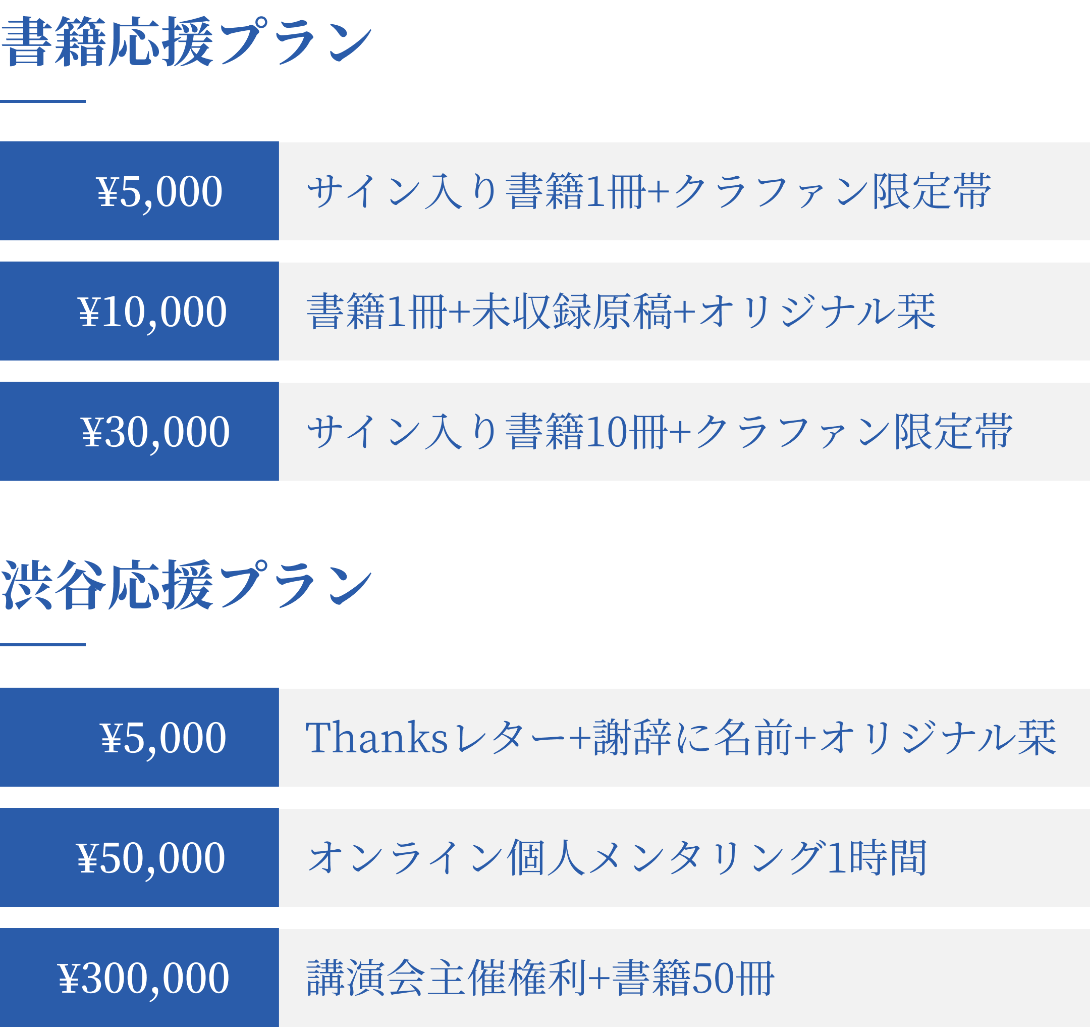 渋谷応援プランという名前にさせていただきました3プランも用意させていただきました。