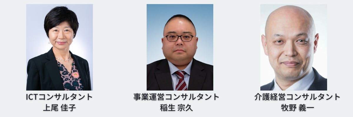 現役の介護経営コンサルタント、介護施設立上げ・運営コンサルタント、ICTコンサルタントが、直接お悩みを伺います。実地指導のコンサルティングも行います。