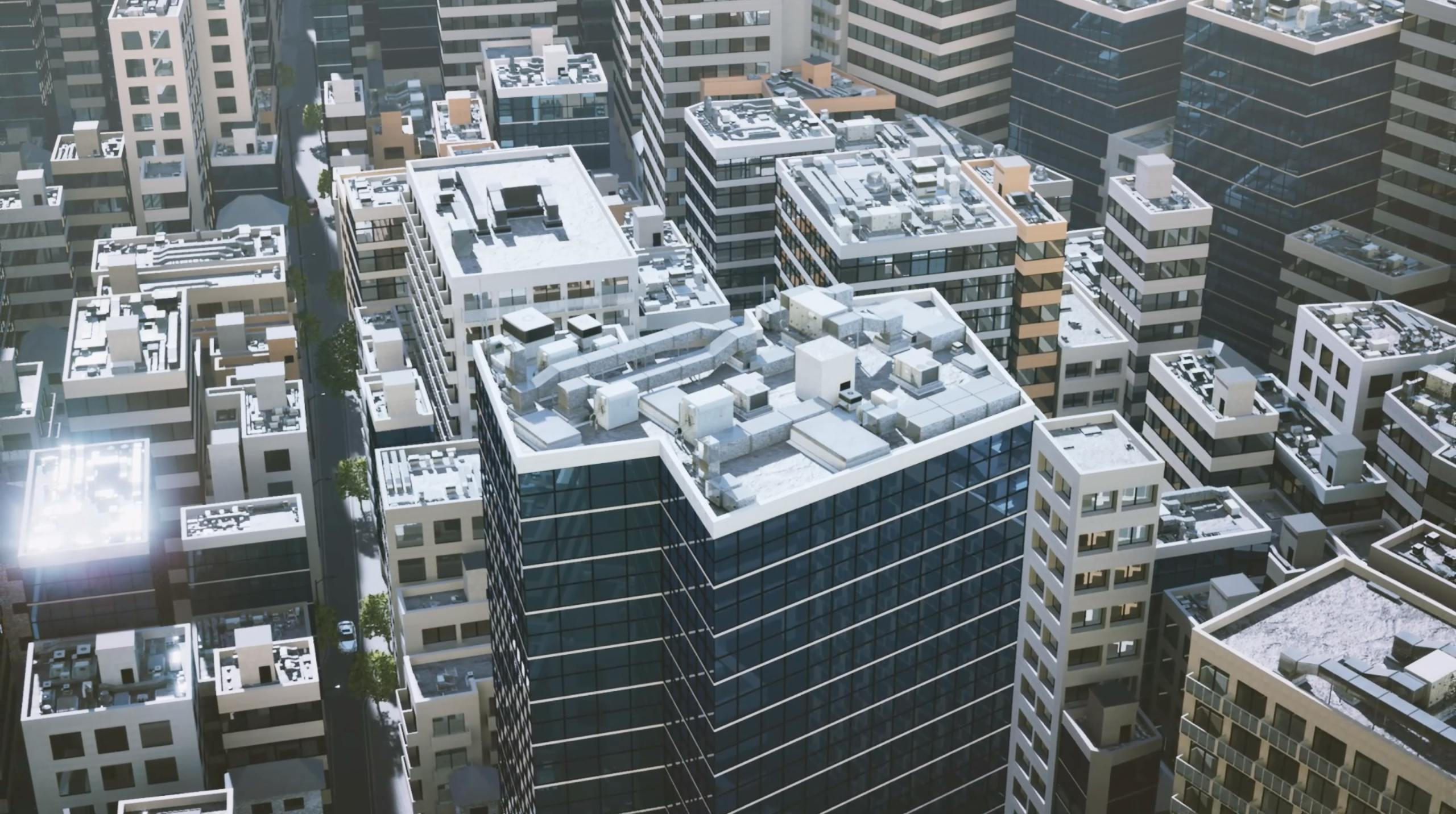 衛星データに機械学習をかけて地上の構造物の意味(物体の種類・形状・色・材質・高さ・広さ・役割など)をシステムに一度理解させた上で3Dモデルに再変換をかけているため、物体に近づいても景観を劣化させずに表現することが可能になっています。