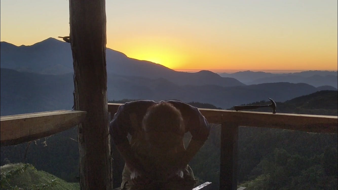 私たちは絶景の景色の見える森の中でツリーハウス式サウナを作ります。