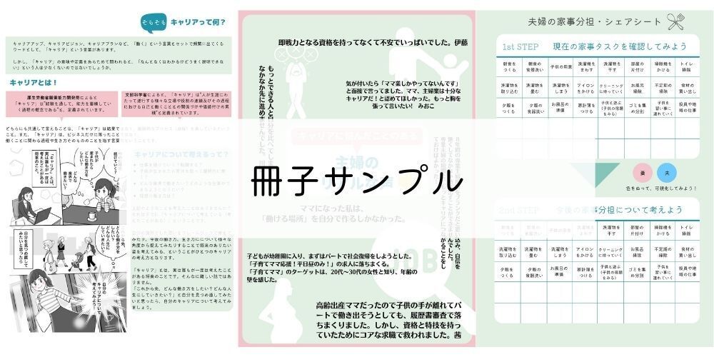 この冊子は、悩んでいるママの背中を押し、そしてパパや周りの身近な人も悩んでいるママの気持ちを知れる、そんな内容となっています。