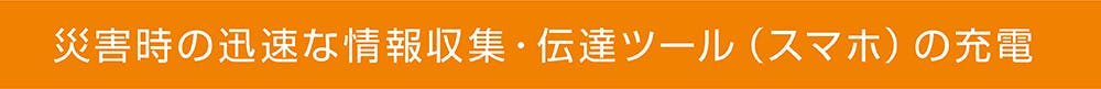 電源の確保が難しい災害時において、救助や被害状況の把握と共にスマートフォンの充電ができるということは大きな安心につながります。(2019年の台風19号の被害の際、市役所の充電サービスに3時間以上並んでも30分程度の充電しかできなかったというケースもありました。)