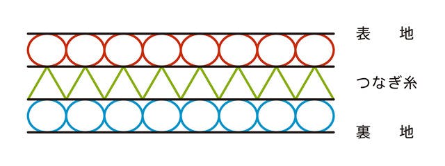 ダンボールの様に真ん中に空気の層を持つ構造をしたニット素材。肉厚感と軽さを両立している。