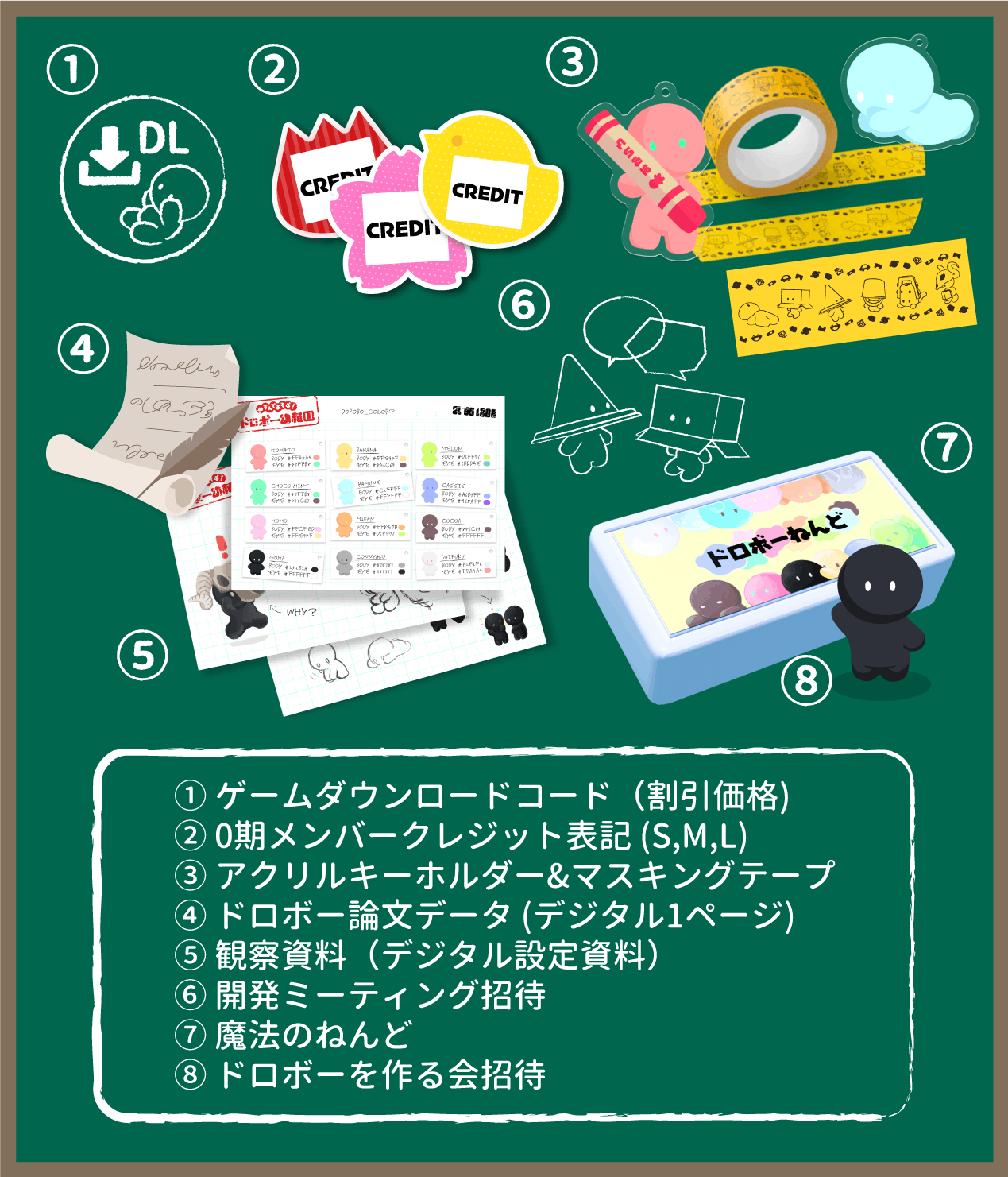 集まった資金はすべてドロボーたちの環境改善(開発費)にあてさせていただきます。