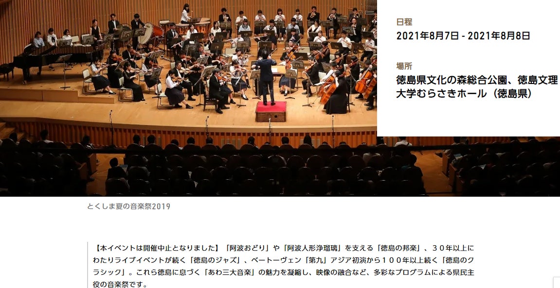 共催プログラム「とくしま音楽祭2021」の開催中止も
