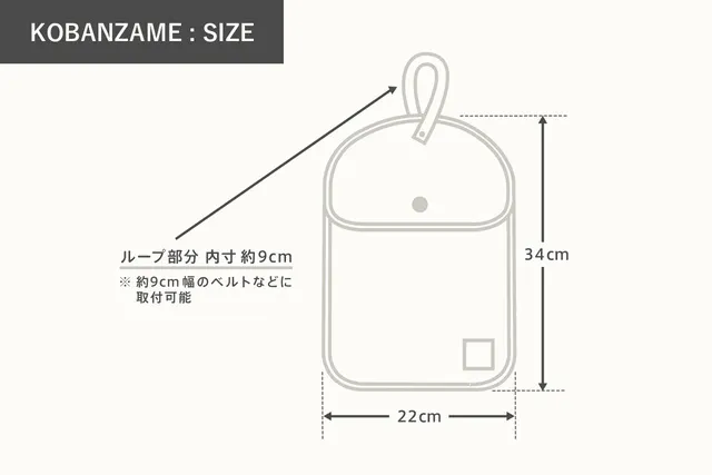さらに、ウェビングベルトが通る部分の両サイドとバックに穴を開け、ウェビングベルト自体が外に出る仕様としており、ウェビングベルト自体にカラビナなどでモノをぶら下げる事が可能です。また、ウェビングベルト自体が外に出ている部分に、オプションとして「Hanging Bag|KOBANZAME」をぶら下げる事が可能です。