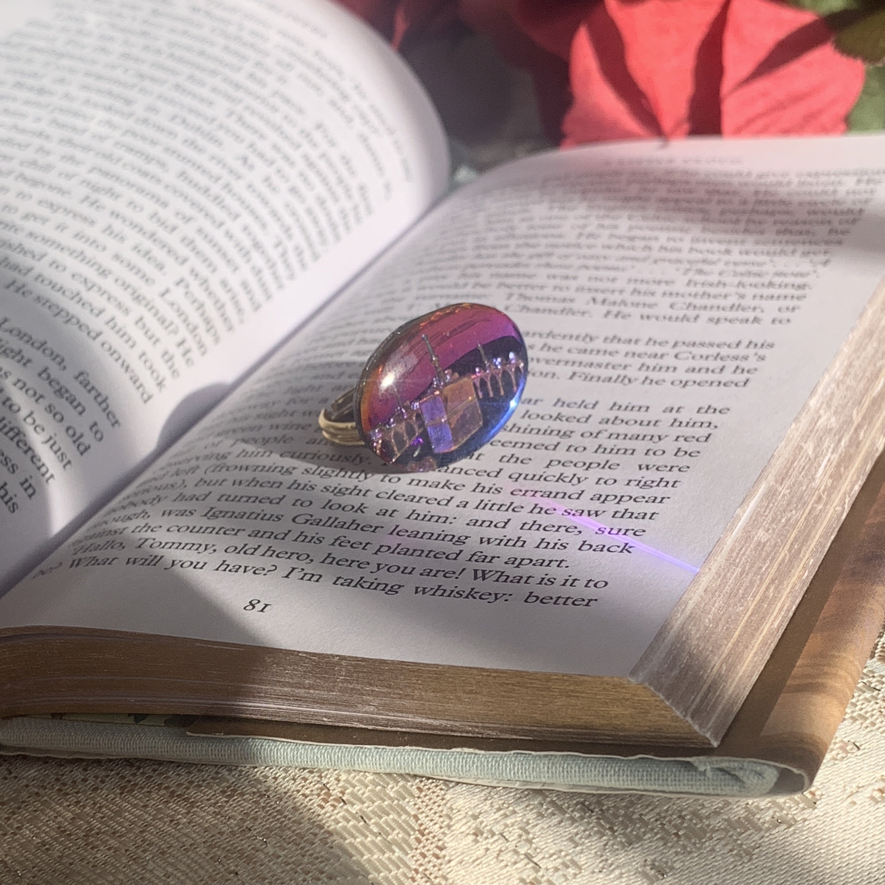 セットの中にはガラスチャームを使ったアクセサリーが含まれております。日光のある場所では、ガラスチャームがより輝きをますので、より一層魅力的です。ガラスチャームはビンテージ特有の小さく細かい傷がついているものが多いです。傷は不良品と捉える事が多いですが、傷でさえもアンティークらしさが出てエレガントです。