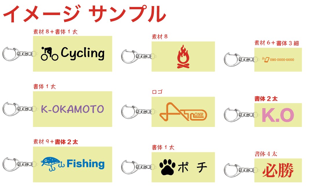 何も、文字・アイコン等を入れず、蓄光プレートキーホルダーのみでもOKです。