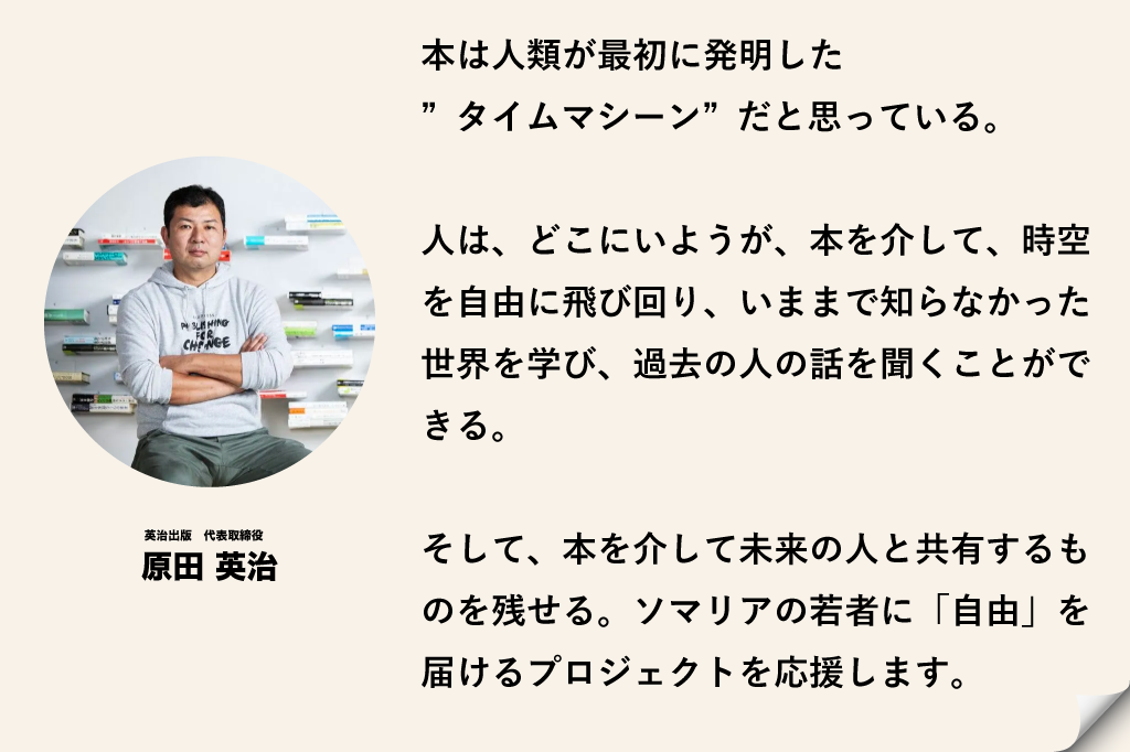 皆様と選んだ日本の本をお届けができることもとても良いのですが、現地の方々のニーズやソマリ語の読める本というところをこのプロジェクトでは大切にしていきたいと思っております。