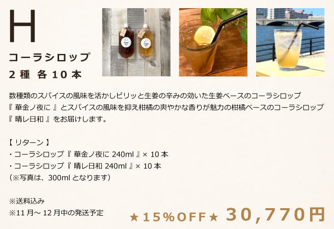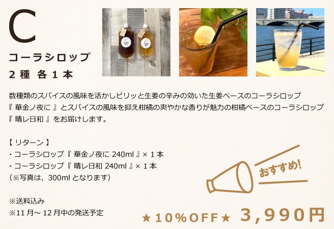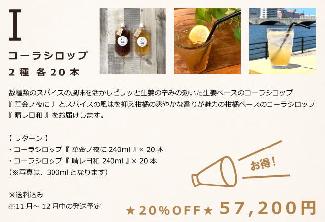 “日常の中に少しリッチな自分時間を提供する”ことをコンセプトにクラフトコーラシロップを作りました。第一弾としてコーラシロップを作り、今後はジンジャーシロップや、昔母親から作ってもらった梅シロップ・しそシロップなどの懐かしさも感じるクラフトシロップなども作っていきたいと思っています。