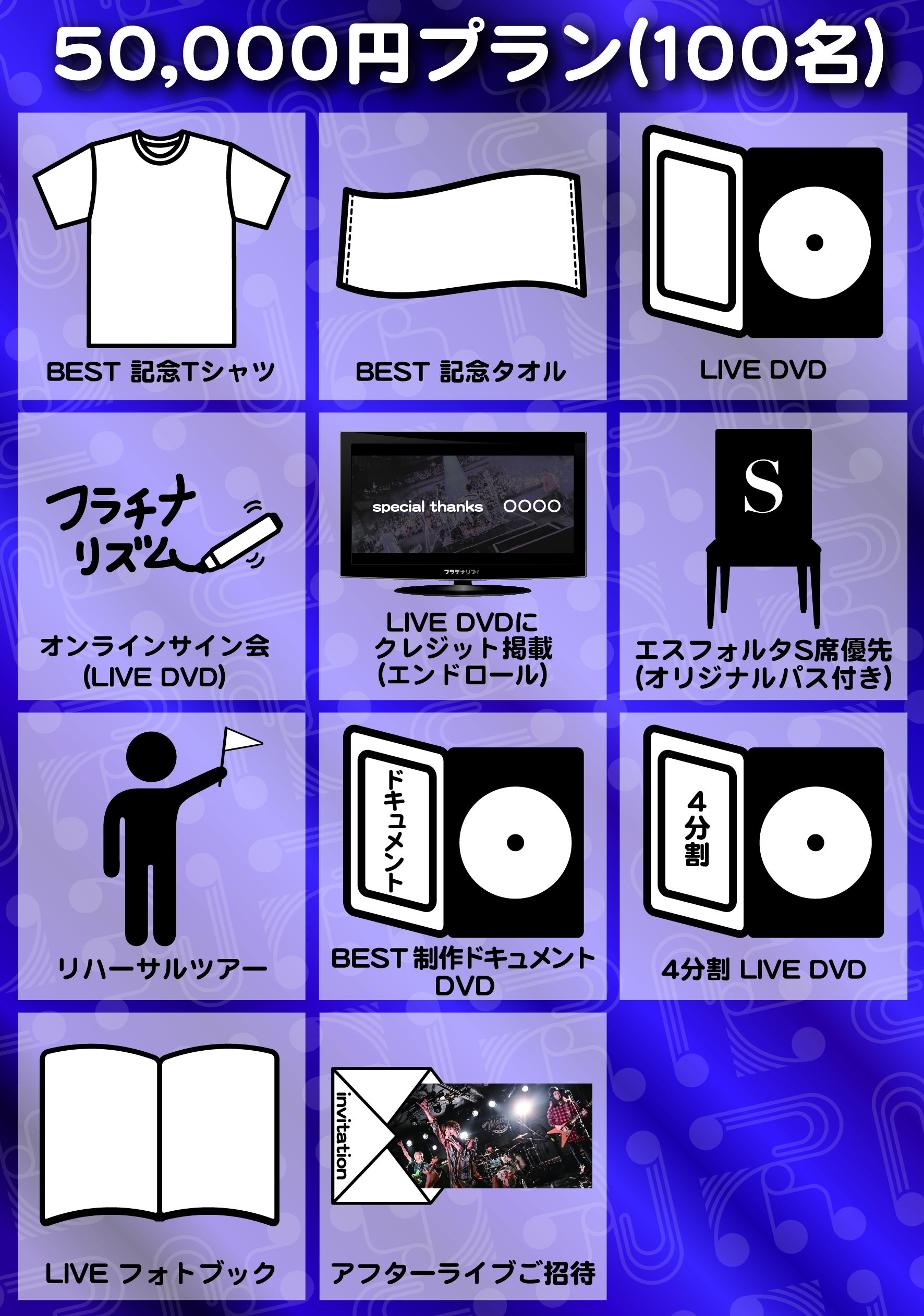 【5】クレジット掲載:LIVE DVDのエンドロールに支援していただいた方のお名前がクレジットとして掲載されます。