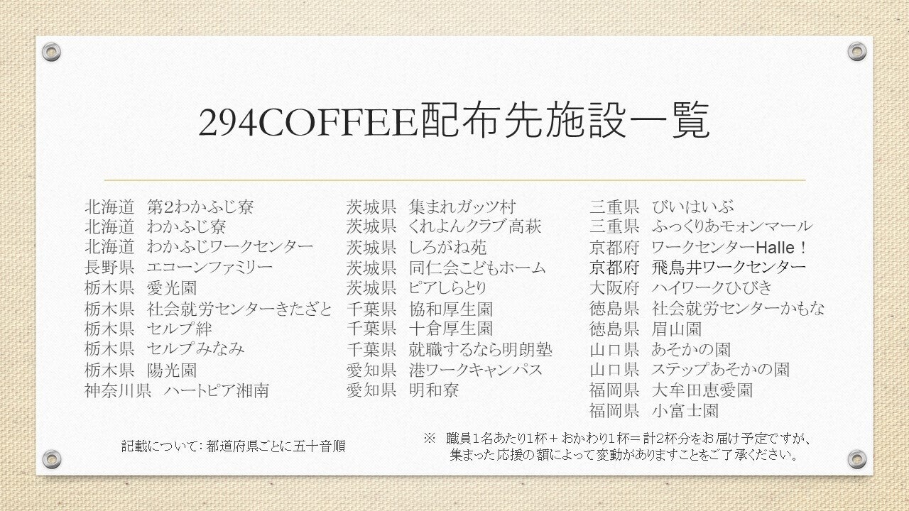 12月上旬から随時寄贈先施設へ(福祉職員に)294COFFEEの配布開始!