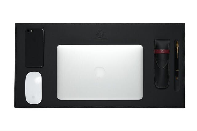 デスクパットにある凹みは、転がりがちなタブレット用スタイラスペンの定位置にも最適。
