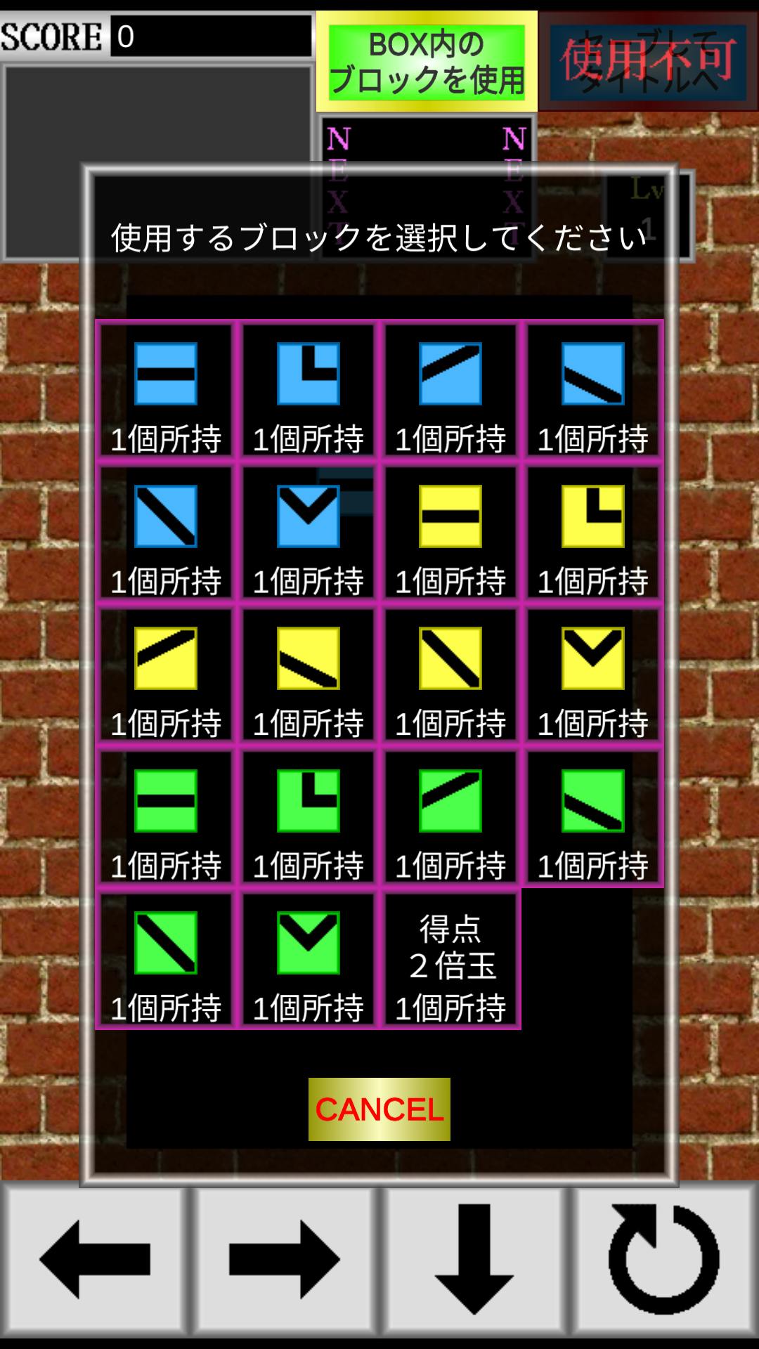 BOXにブロックをセットしておくと、セットしたブロックをゲーム中の好きなタイミングで使えるので便利です(2回連続では使えません)。