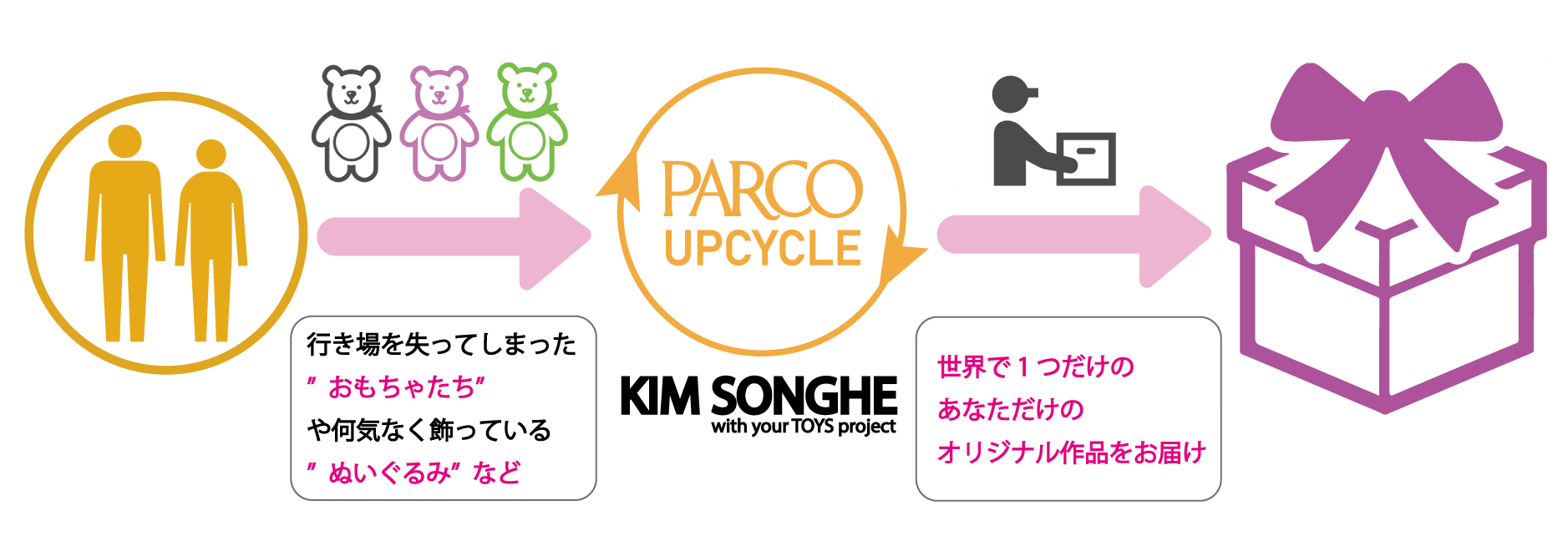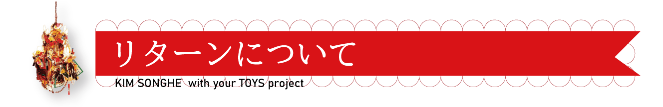 ※お手持ちのおもちゃやぬいぐるみをお送りいただかなくてもお申込みいただけます。その際はKIM SONGHE(キムソンへ)によるおもちゃやぬいぐるみのアソートによる作品となります。