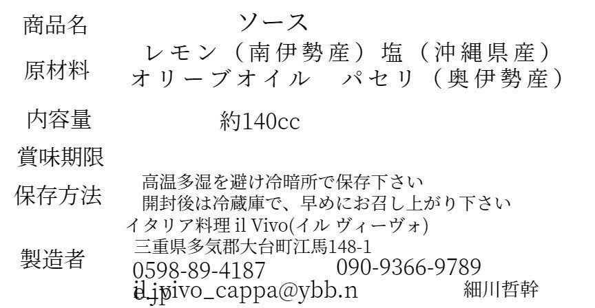 Frutti di mare(魚介のラグーソース):東紀州や伊勢湾などで揚がった魚介類を骨ごと圧力をかけてミンチにしたカルシウムたっぷりのラグーソース(ラグーとは仏語で煮込みの意)。海洋版ミートソースの様なものです。