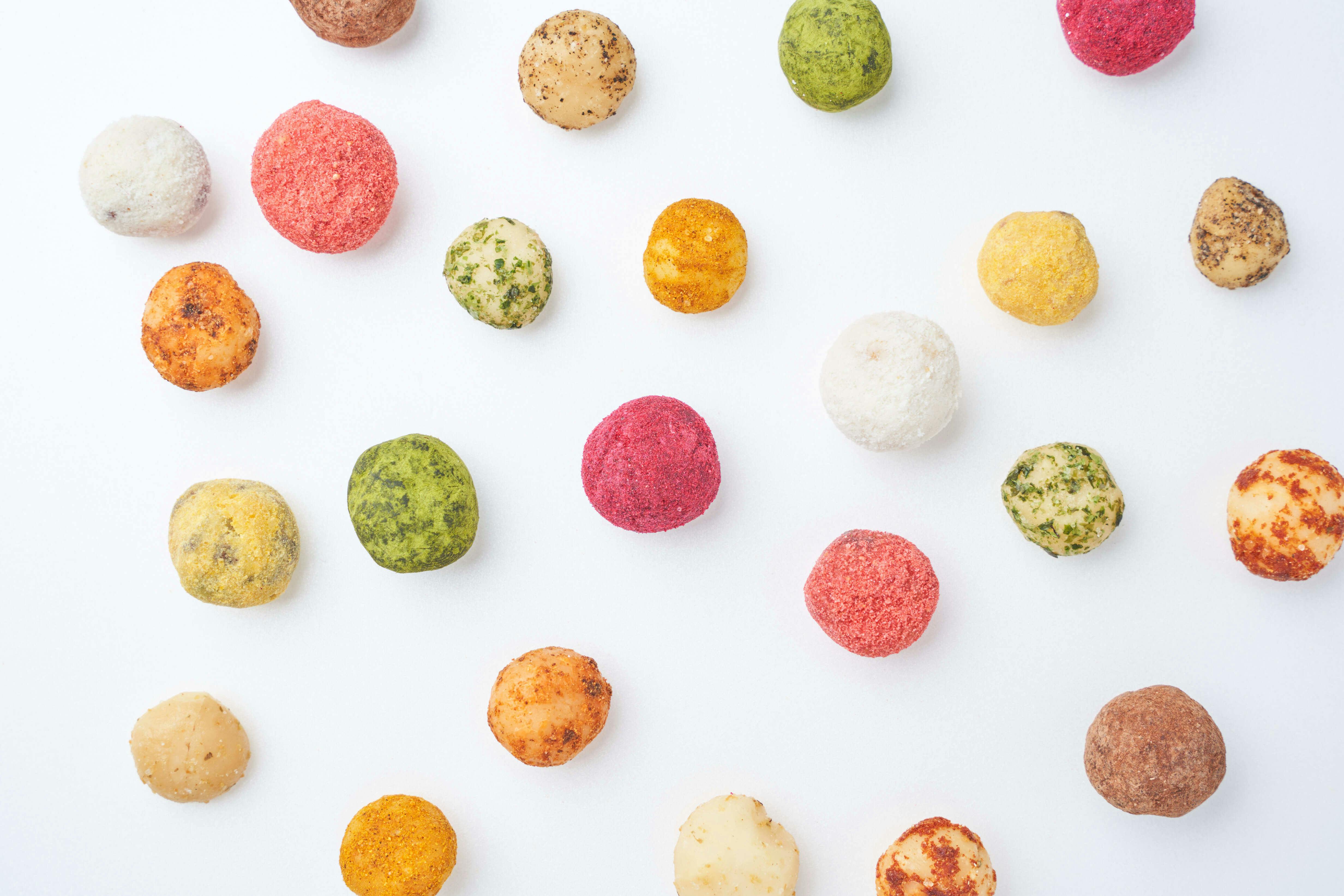 一粒一粒手作業で、独自のフレーバーをコーティングしていきます。