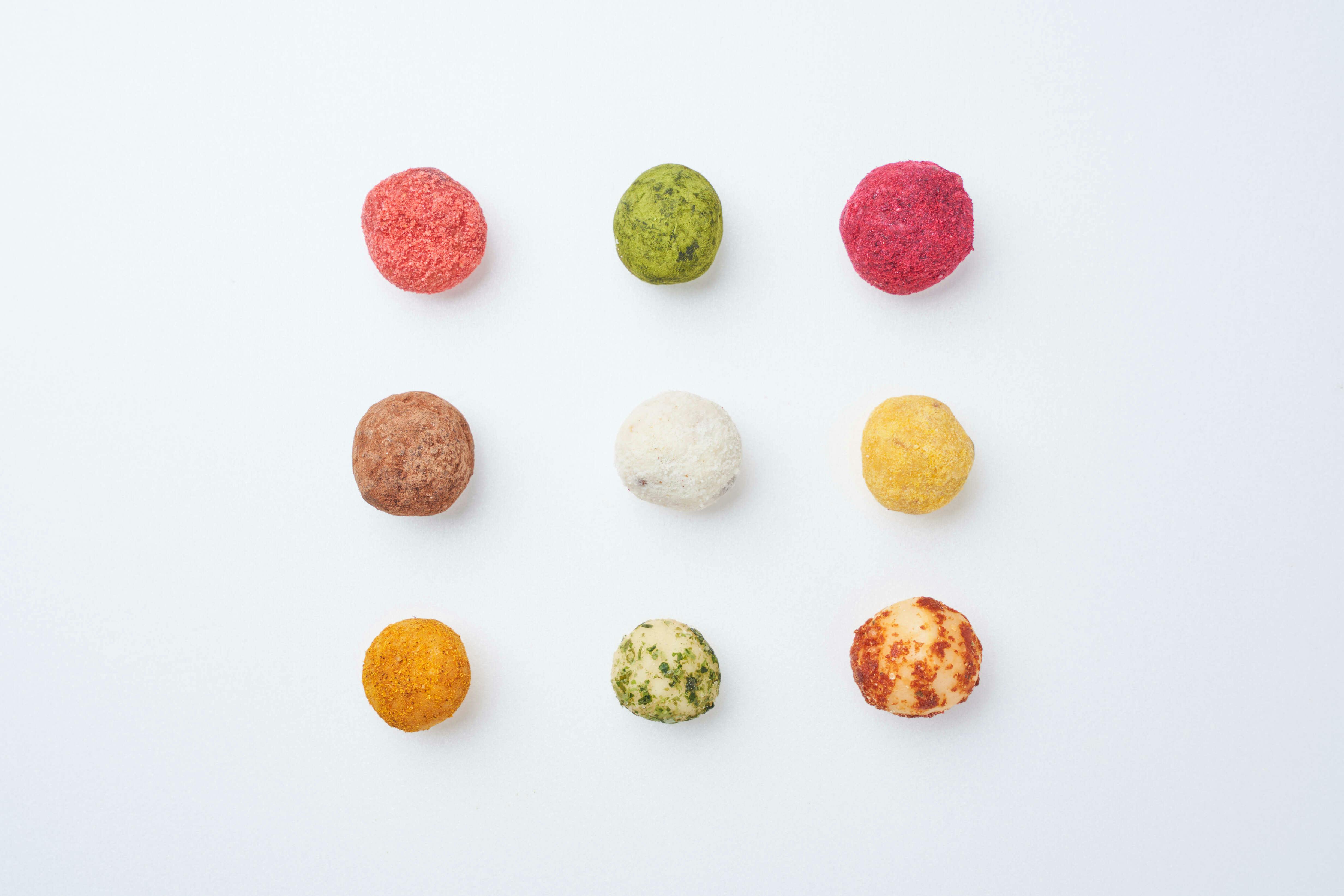 ココナッツ、マンゴー、チョコレート、ストロベリー、ベリーミックス、グリーンティー