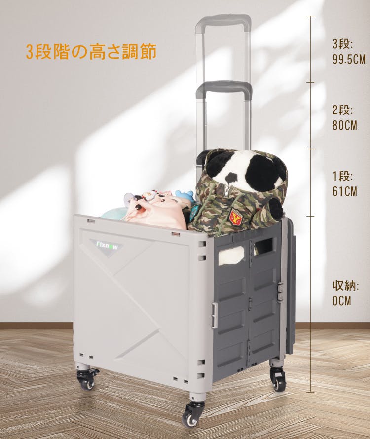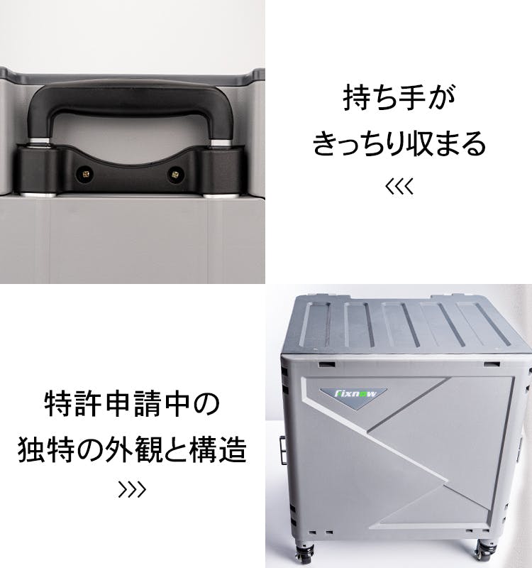 約50L大容量のキャリーカートは、折りたたむと奥行き11.5cmになります。しかも、展開も収納もわずか4ステップで超簡単!