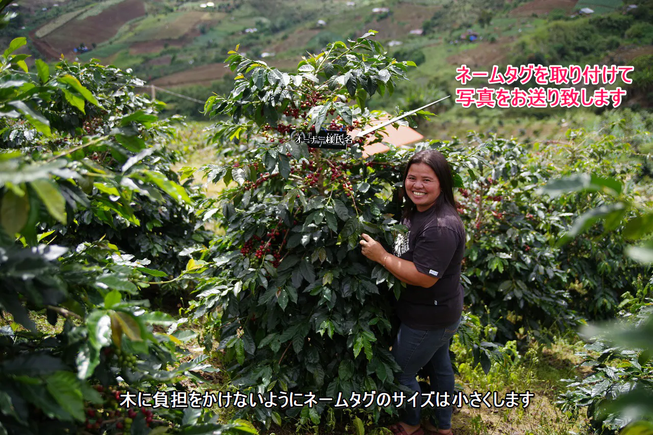 会員権を獲得された方は、アポ山麓で最優良農園(2019年フィリピン品評会優勝農園、BACOFA農協組合長Ms. Marivic C. Dubriaさん)のコーヒー樹木のオーナーシップ会員権を1本から所有でき、さらに農園から収穫された生豆を配送→焙煎してお届けします。(※オーナーシップ権は1年更新となります。)