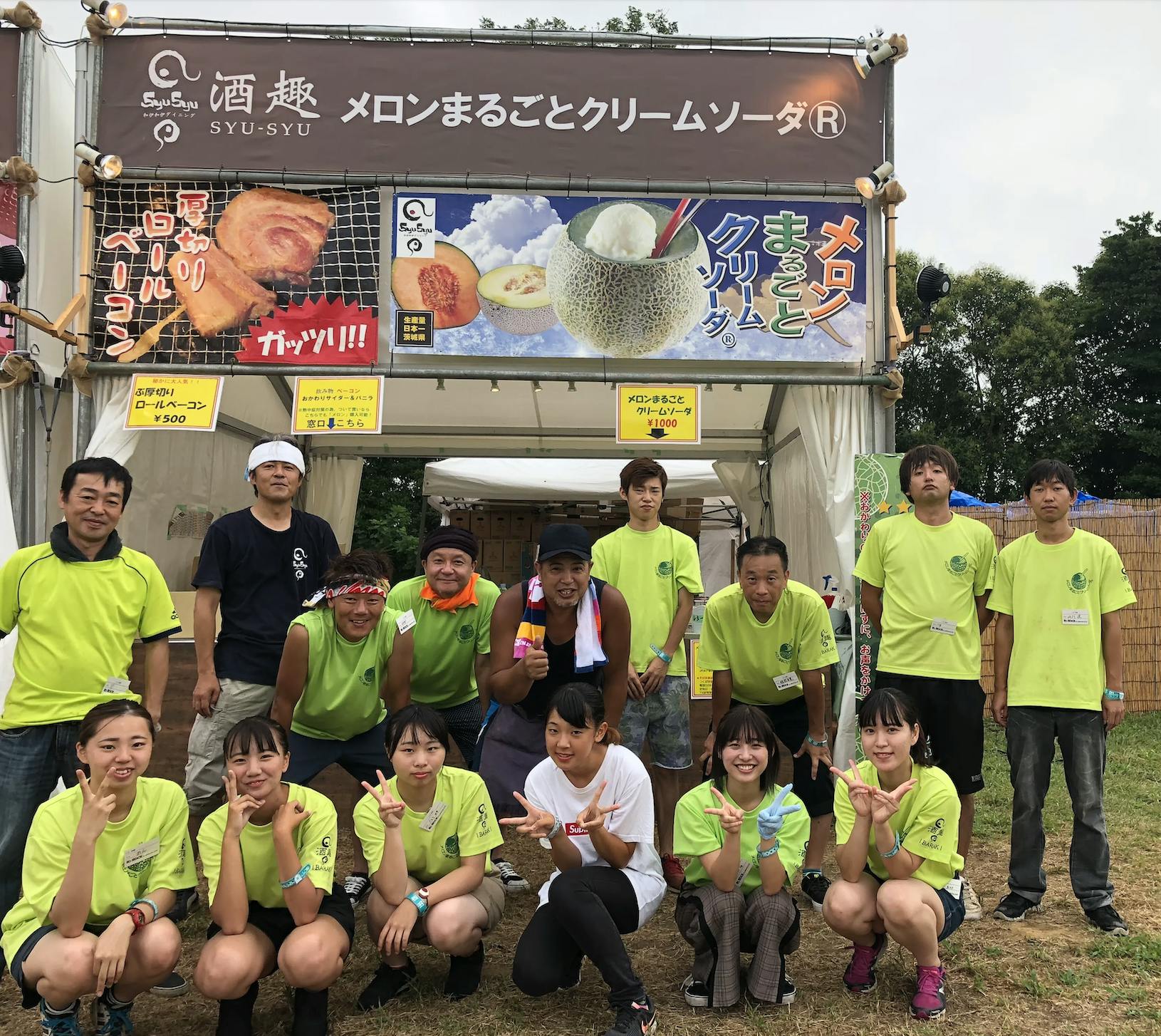 水戸・つくばにて2002年より営業しております、「酒趣」(しゅしゅ)です。2007年よりROCK IN JAPAN FESTIVALに出店、メロンまるごとクリームソーダを提供させて頂いております。