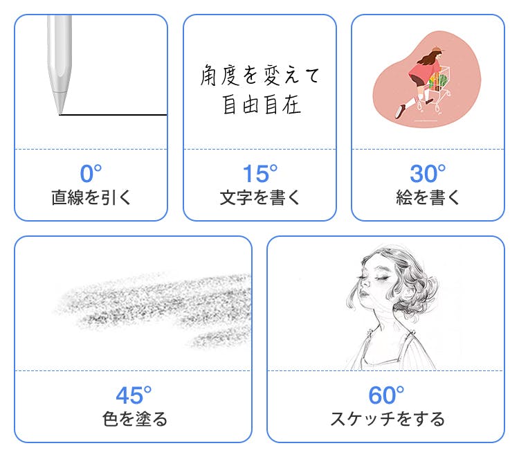 ・ペンの傾斜を感知し、書きたい線がそのまま書ける