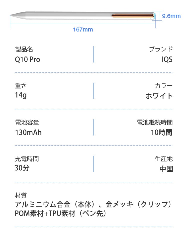 クリップ部分には金メッキを使用し、一体成型だから見た目がきれいで高級感があります。iPadと「Q10 Pro」を一緒に持てば、仕事や勉強のモチベーションも高まります!