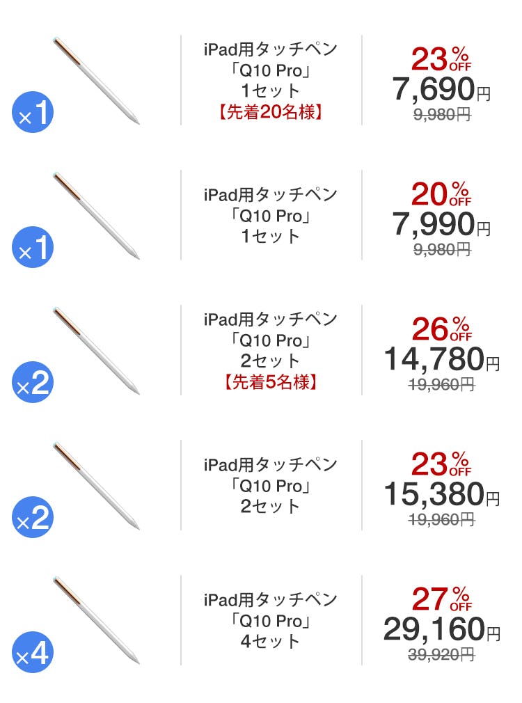 2021/10/26 09:18unsyuでございます。この度はiPad用タッチペン「Q10Pro」にご支援・ご関心いただきまして、誠にありがとうございます(^^)/本プロジェクトですが、遂に終了日11/10(水)まで残り15日と2週間程になりました。現在、16名の皆さまにご協力をいただき、応援購入総額130,430円のご支援をいただいております。本当にありがとうございます!残り2週間ほどですが、最後まで本プロジェクトをよろしくお願いいたします(*^-^*) もっと見る