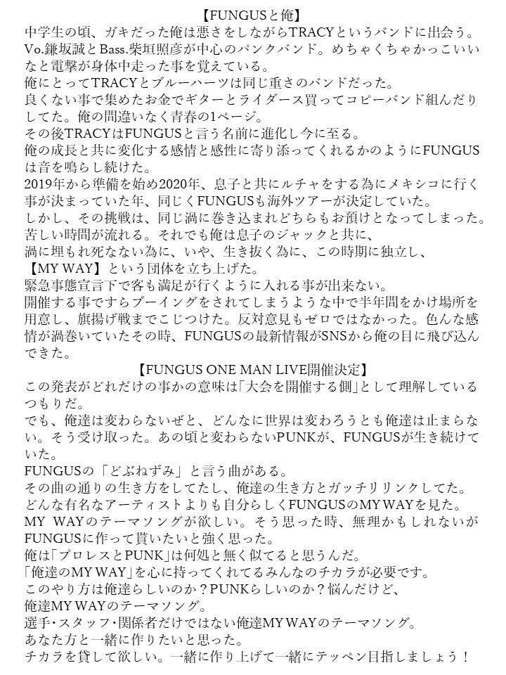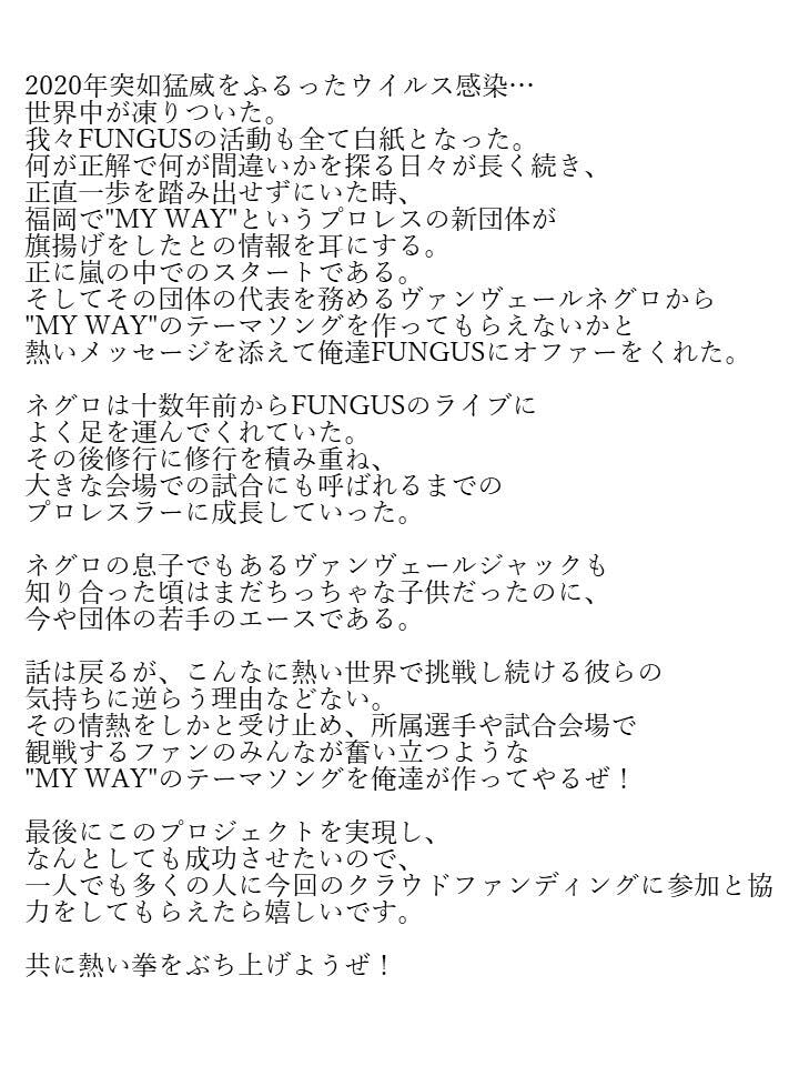 プロレス団体MY WAYのテーマソングをFUNGUSが作詞作曲するプロジェクトを現在進行しております!