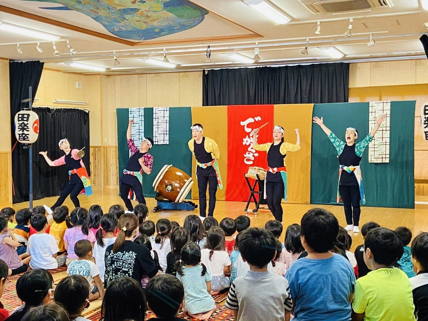 創立当初より「健康で、明るく、底抜けに楽しい」をモットーに、現代に暮らす人達に芸能を身近に楽しんでもらえるよう、保育園・学校公演や全国公演、イベント出演、和太鼓・芸能の講習会などをお届けしてきました。
