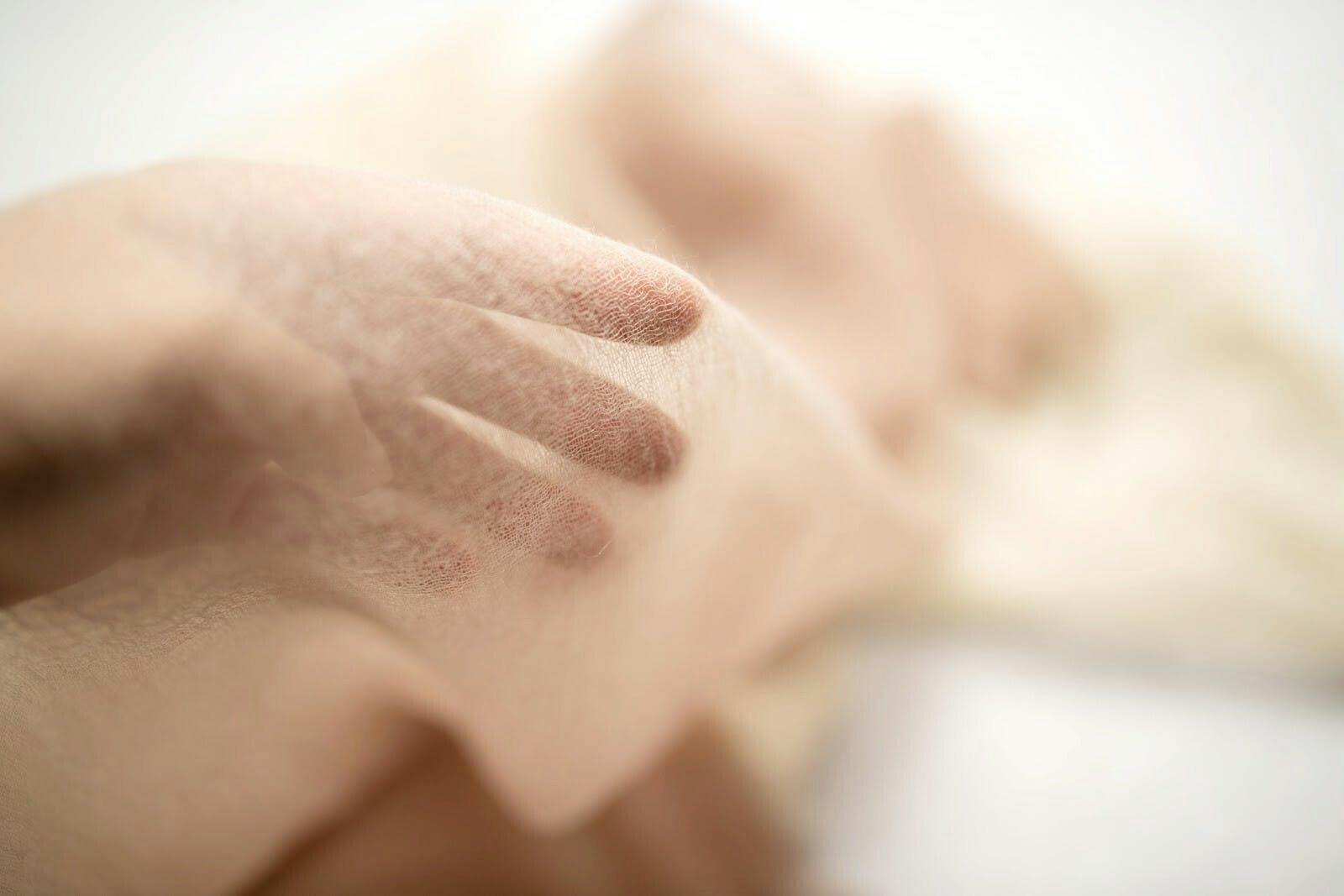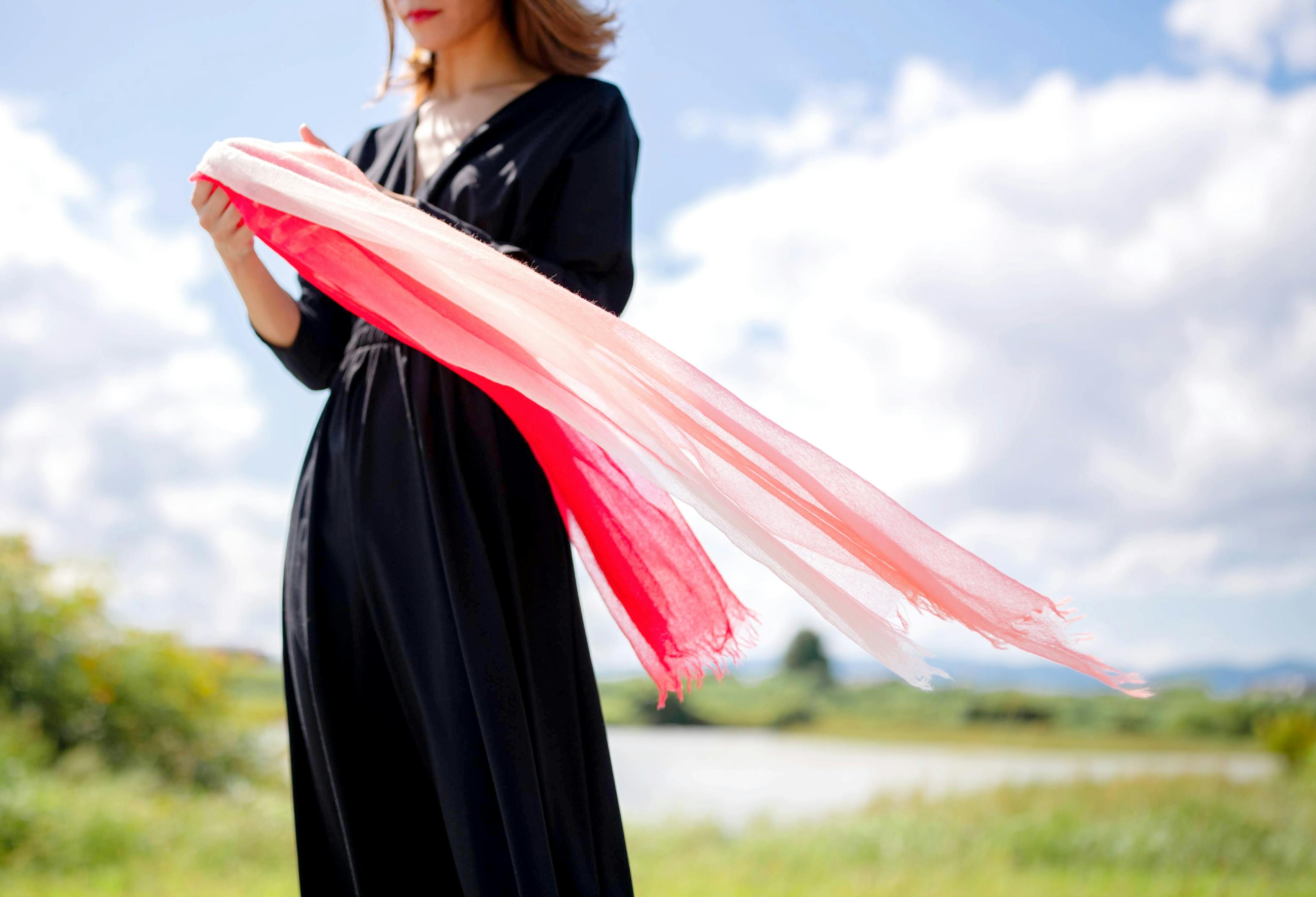 『空気のようなカシミヤ100%ストール』は独特の風合いを表現するために、限界まで細くした糸を使用しています。その為、強く引っ張ったり引っ掛けたりすると、糸のずれや切れの原因になります。
