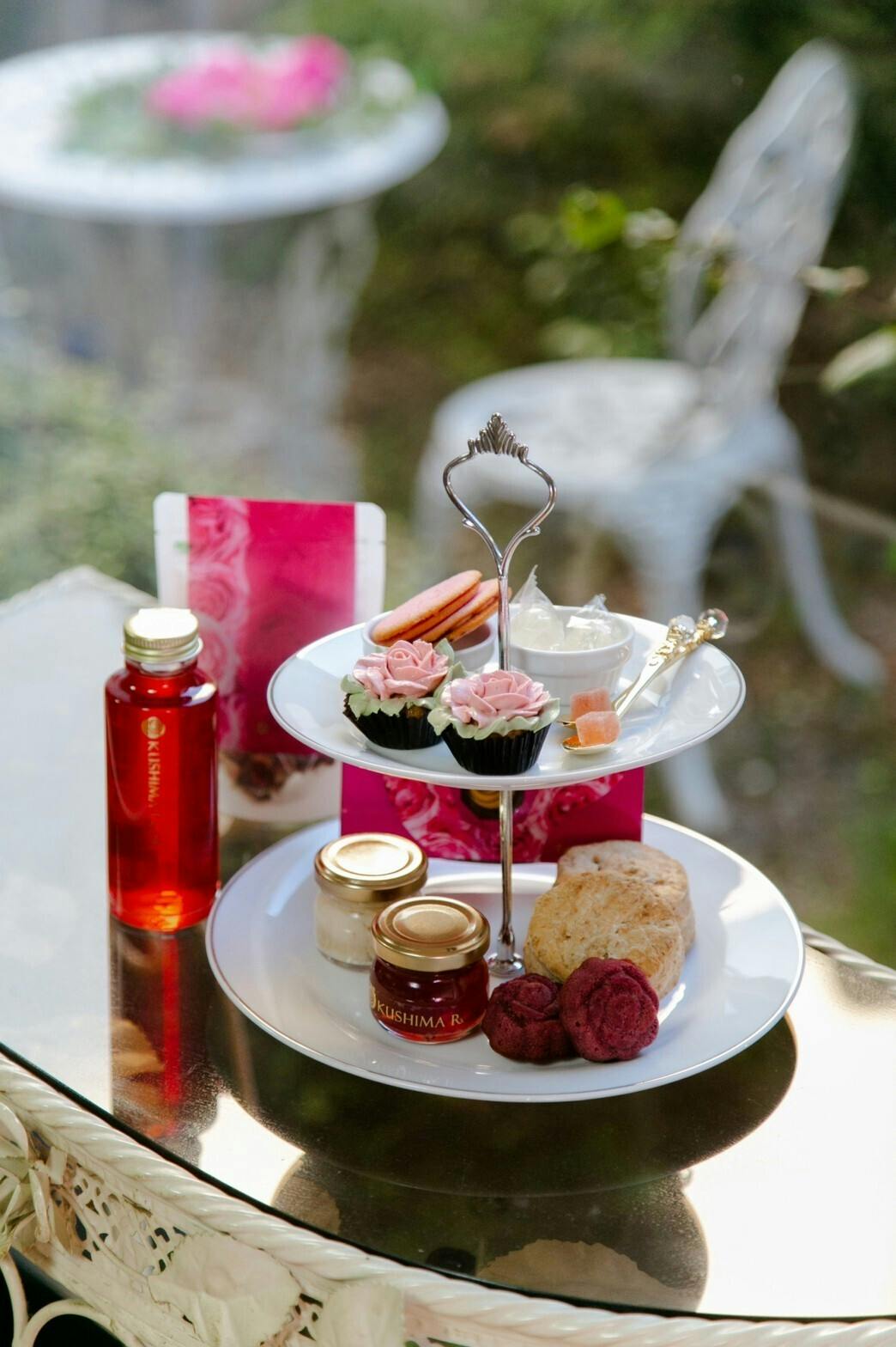 2021/10/28 14:40リターン品の一つ、ローズアフタヌーンティーの写真を撮影していただきました!本文にも記載しておりますが、リターン品のお取り寄せアフタヌーンティーは以下の通りです。◆ケーキスタンド(2段)(ココット・スプーンは付いてきません)◆神戸のパティシエ井上さんのバラモリ限定マドレーヌ×2◆ 香るバラのスコーン×2個◆ 香るバラのしずく(バラシロップ)125g×1◆ 香るバラのバター25g×1◆ 香るバラのジャム25g×1◆ パヴェドローズ(バラの生チョコ)5粒入り×1◆ 香るバラのお茶5TB×1◆ 香るバラのカップケーキ×2◆ 香るバラのラングドシャ2枚◆ ローズキャンディ×2◆ ローズライフバランス(バラのサプリメント)×2玖島ローズ自慢の商品を中心にお届けいたします。更にマドレーヌは、“バラモリ”限定を予定していたもので、公式Webサイトでは販売はしておらず、今後の販売の予定も決まっておりません。バラモリ協力者のパティシエ井上さんの手作りのものです。今回だけのスイーツを是非お楽しみください! もっと見る