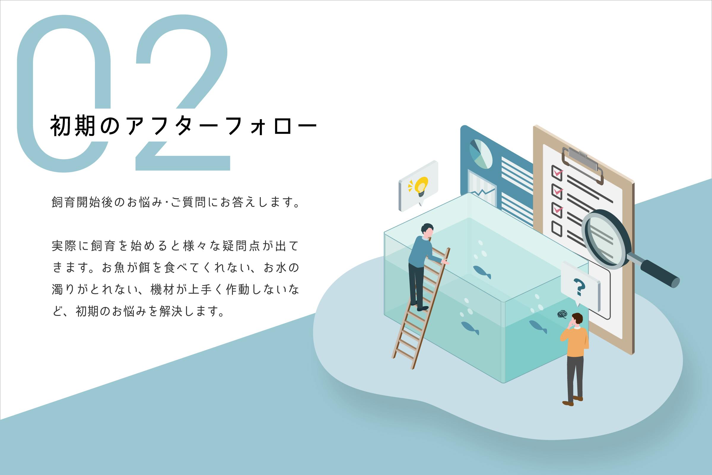 - ①スタートアップコンサルティング:飼育魚・飼育方法/資材のご提案をします。